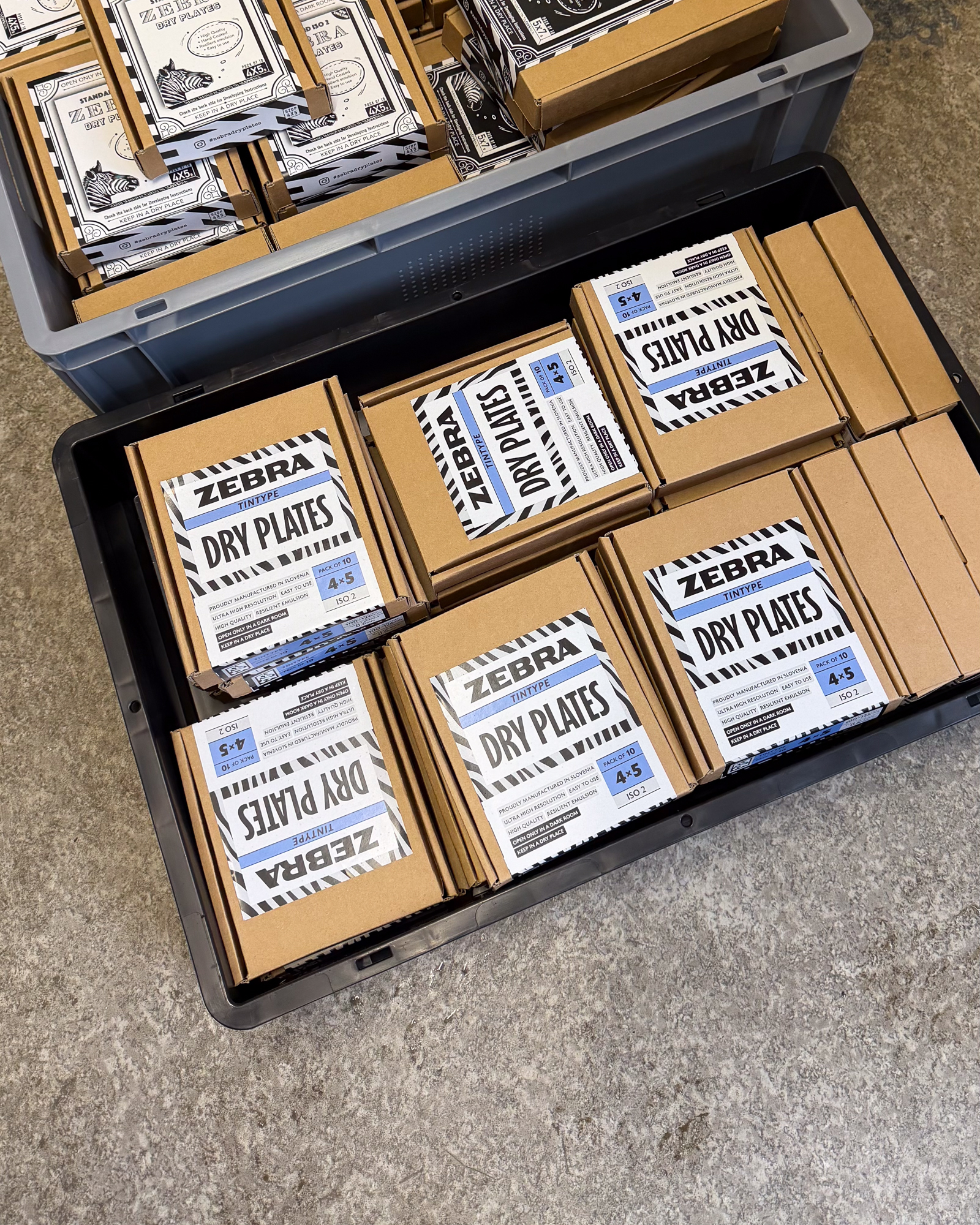 After exposure, the plate was developed using a Zebra tintype or direct positive developer based on 510 Pyro with ammonium thiocyanate.