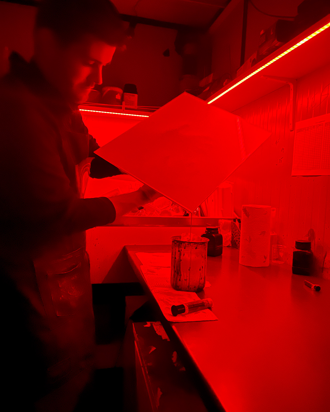 Precision and Practice: Achieving an even emulsion layer across a 20×24-inch surface takes a lot of skill and muscle memory.