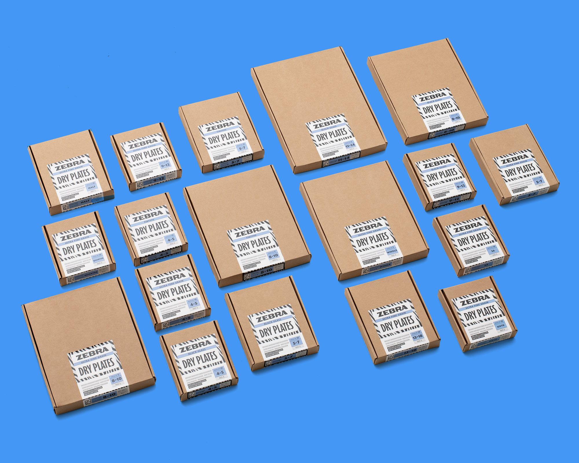 Zebra 11×14 Black Glass Dry Plates combine precision-manufactured opaque black glass with ultra fine-grain silver gelatine emulsion to produce beautiful, high-contrast direct positives.