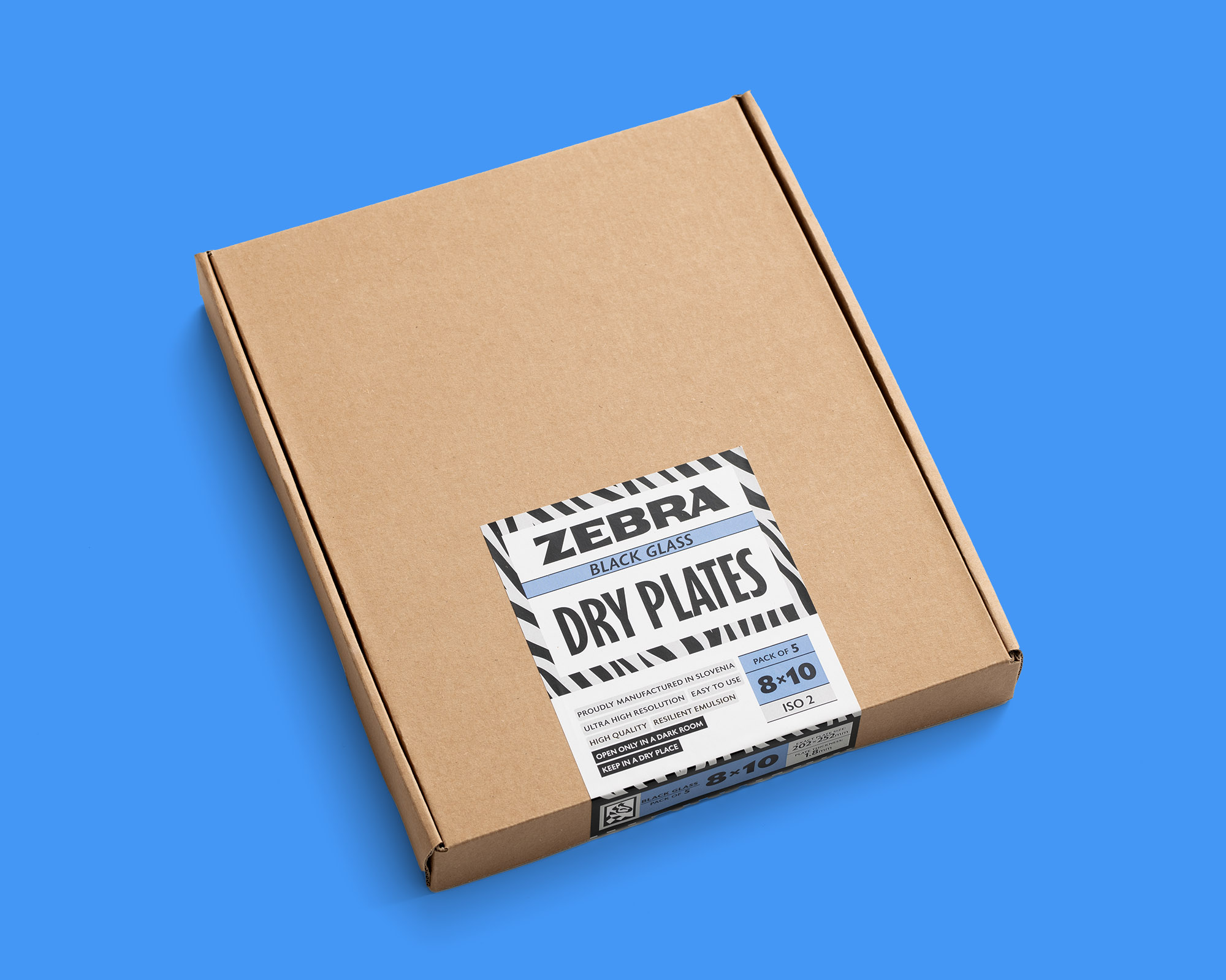 Zebra 8×10 Black Glass Dry Plates combine precision-manufactured opaque black glass with ultra fine-grain silver gelatine emulsion to produce beautiful, high-contrast direct positives.