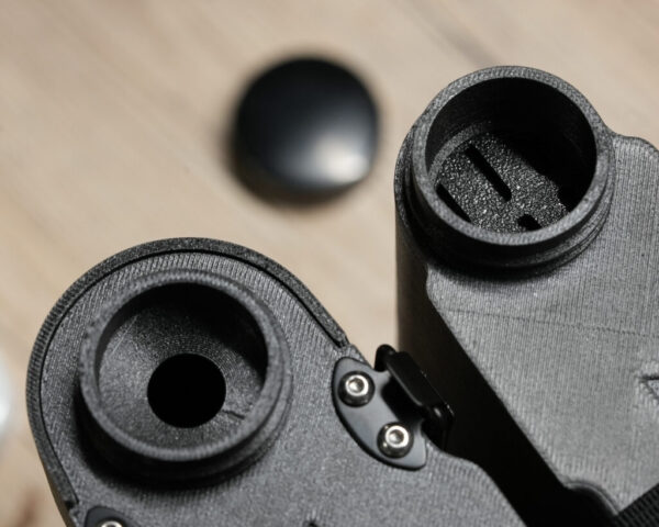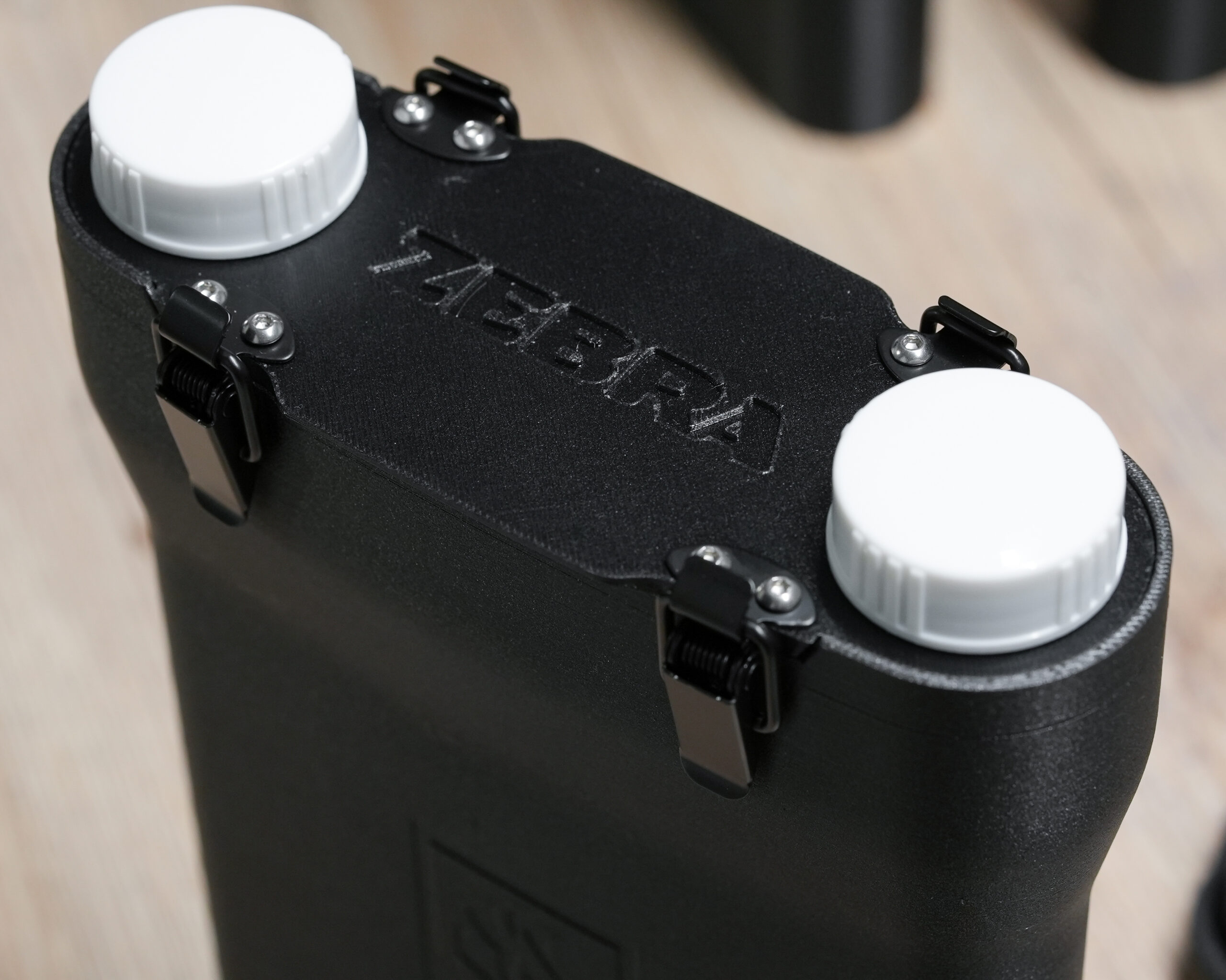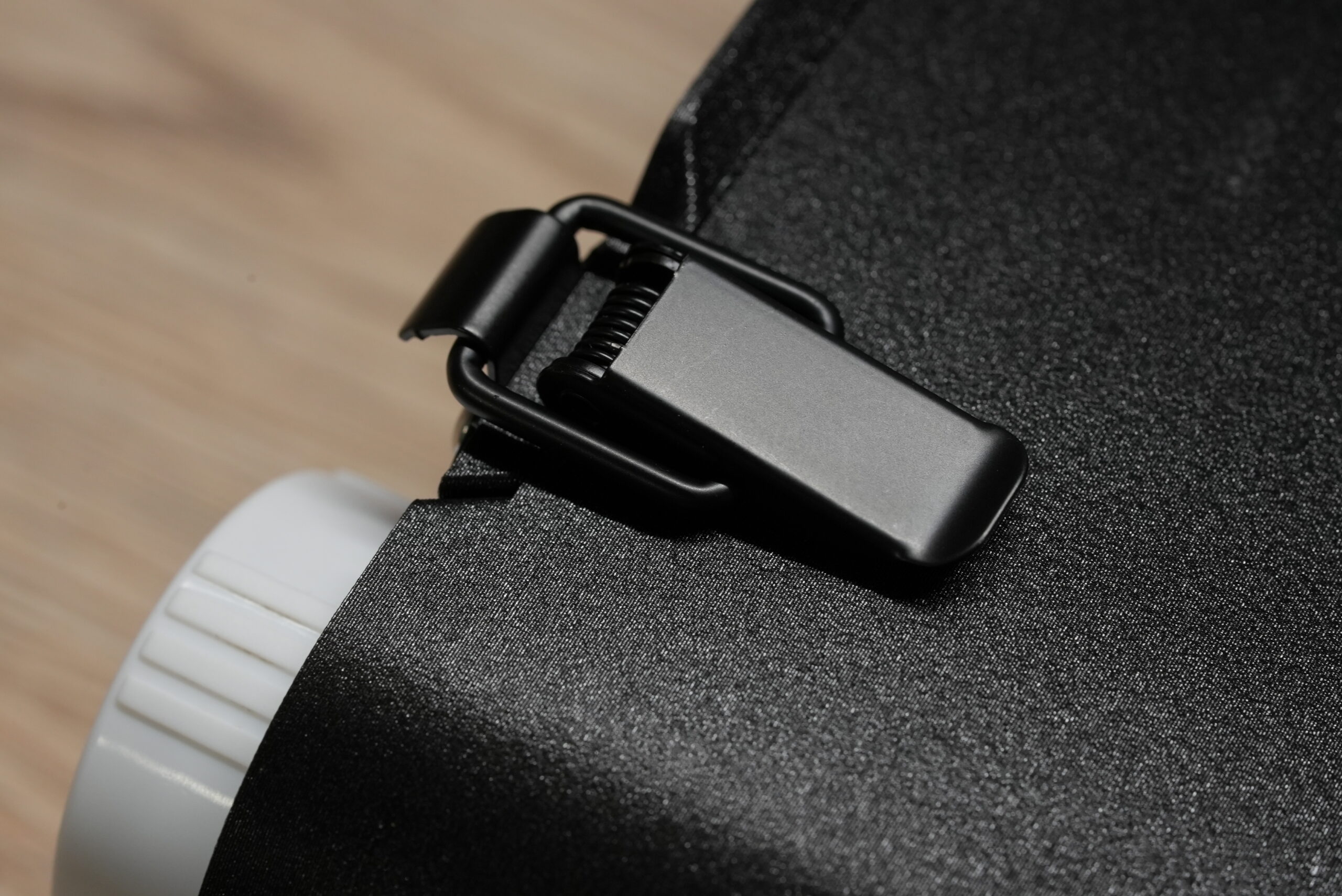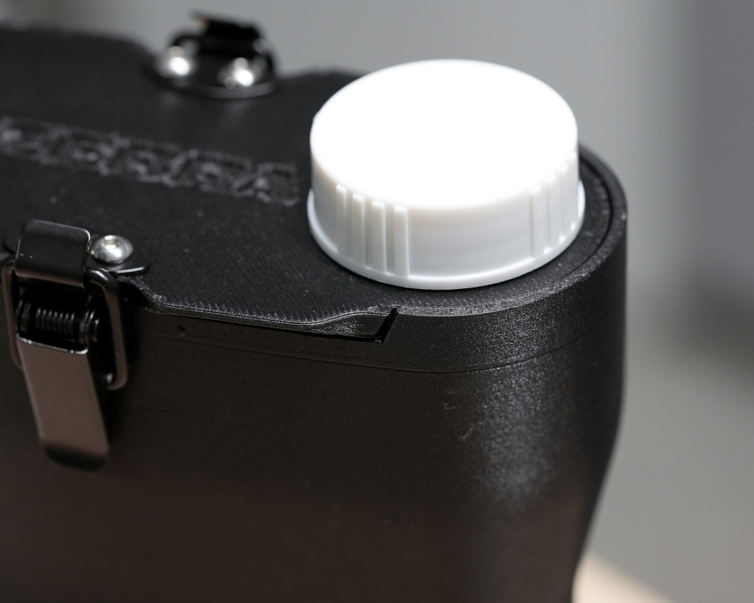 We also replaced the lid’s original elastic band system with stainless steel clasps. These not only feel much more secure in hand, but they also work in any orientation, even in complete darkness. They press the lid firmly against a seamless, chemically resistant inner seal, creating a 100% watertight and light-tight seal, even under extreme conditions.